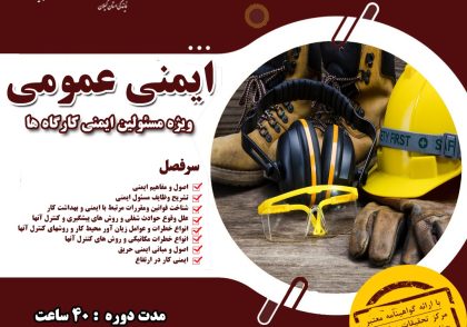دوره های آموزشی ایمنی عمومی ویژه مسئولین ایمنی کارگاهها، ایمنی عمومی ویژه کارگران و شناسایی...