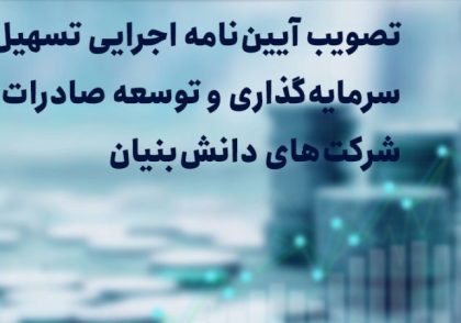 تصویب آیین نامه اجرایی تسهیل سرمایهگذاری و توسعه صادرات شرکتهای دانشبنیان/ معاونت علمی حضور شرکتهای دانشبنیان در زنجیره ارزش بینالمللی را فراهم کند